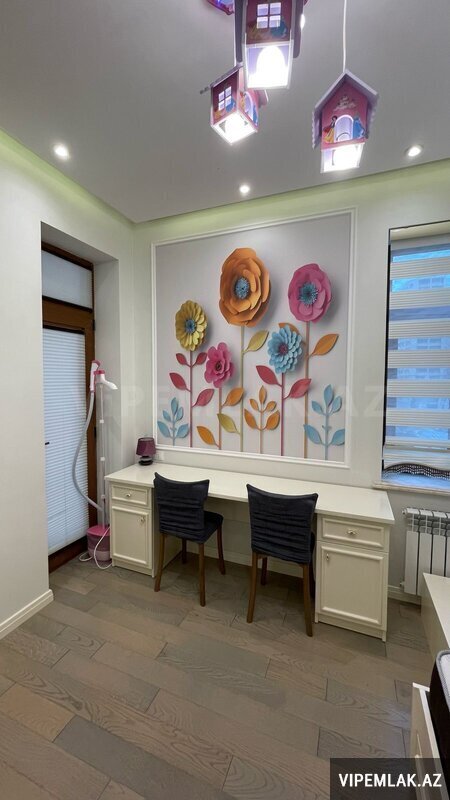 Şəhərin elit yerlərindən olan Elmlər Akademiyası m/st yaxınlığında, Almaz Park və Renessans Palasla üzbəüz Nazirlər Kabinetinin əməkdaşları üçün tikilmiş elit yaşayış kompleksində, yüksək keyfiyyətli materiallardan istifadə olunmuş super təmirli 4 otağa düzəldilmiş böyük terraslı mənzil bahalı əşyalarıyla birlikdə satılır. Mənzil 4-cü mərtəbədə (yaşayışın 1-ci mərtəbəsi) yerləşir, sahəsi 140 kv/m, 3 yataq otağı, 1 zal, 2 sanuzeldən (biri yataq otağında yerləşir) ibarətdir, 2 uşaq otağına giriş zaldandlr. İsti pol və kombi sistemi mövcuddur. Mənzilin təmirinə söz ola bilməz, iki ilə yaxindir təmir olunub və premium təmir olunub. Mənzil xüsüsi montaj olunmuş mebellər və şəkildəki bütün əşyalarıyla birlikdə satılır.